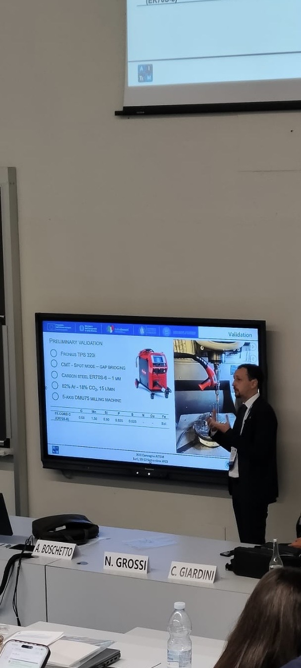 Niccolò Grossi presented the geometrical model of the process with the work titled "Physics-based model for dot geometry prediction in dot-by-dot Wire Arc Additive Manufacturing"